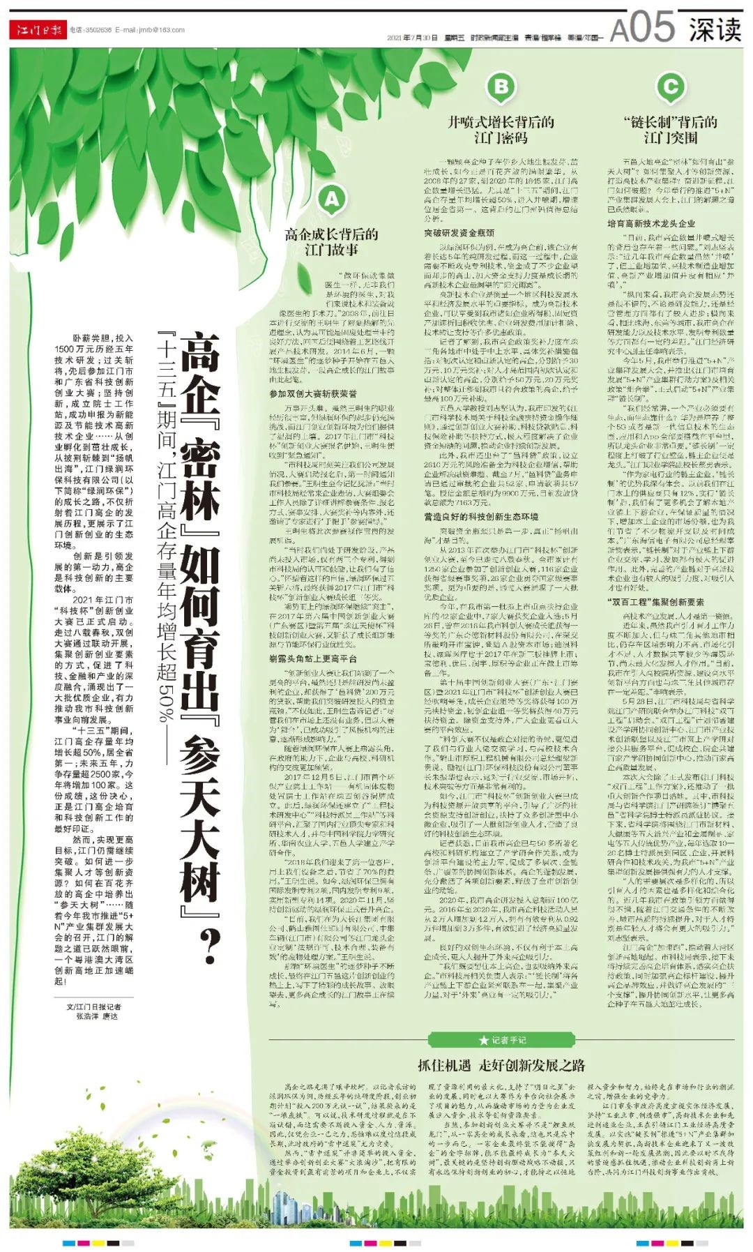 一顆顆高企種子在僑鄉(xiāng)大地生根發(fā)芽、茁壯成長(zhǎng),如今正是百花齊放的滿(mǎn)眼繁華。從2008年的27家,到2020年的1845家,江門(mén)高企數(shù)量增長(zhǎng)迅猛。尤其是“十三五”期間,江門(mén)高企存量年均增長(zhǎng)超50%,進(jìn)入井噴期,增速位居全省第一。這背后的江門(mén)密碼值得總結(jié)分析。