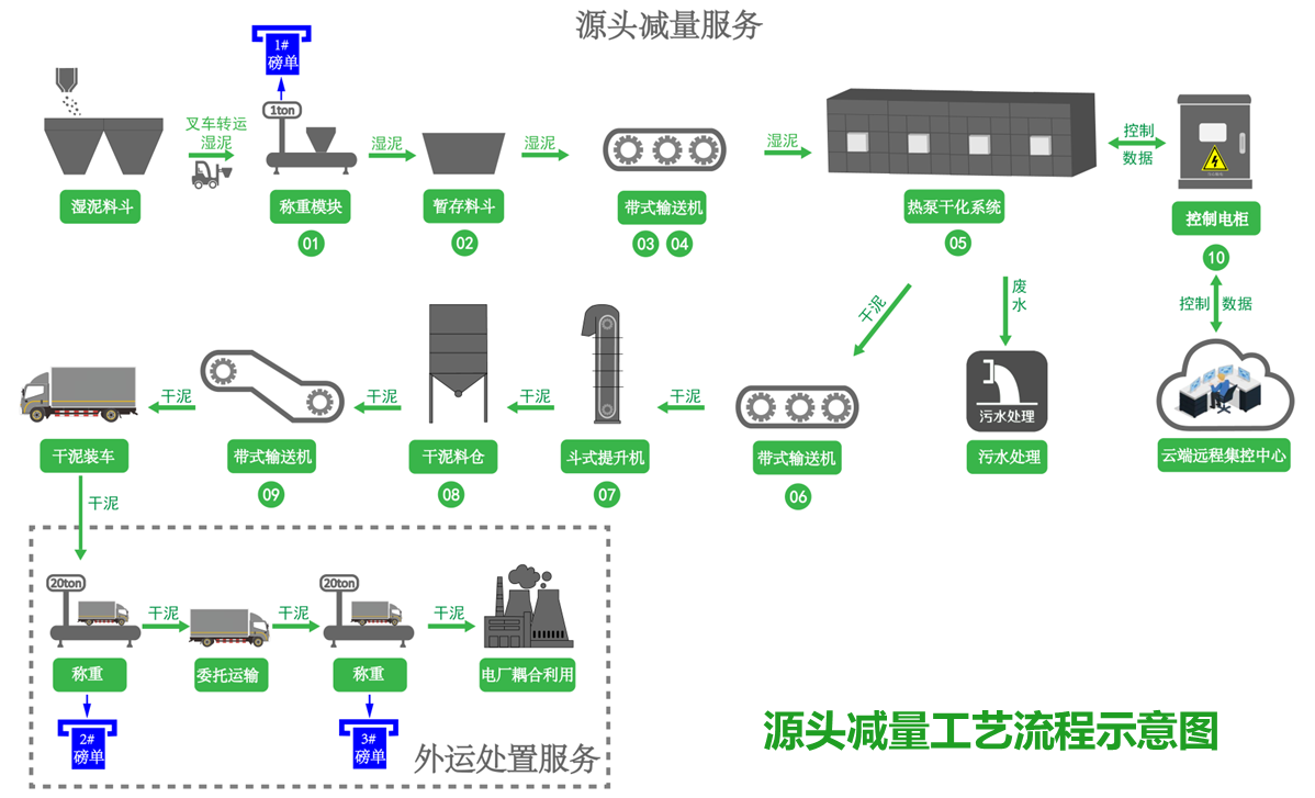 為助力無廢城市的建設(shè),實現(xiàn)污泥源頭減量、無害化、資源化政策要求,江門市國禎污水處理有限公司委托江門綠潤環(huán)??萍加邢薰緸榻S板框壓濾機脫水污泥作源頭減量及外運處理。綠潤科技積極探索污泥處理處置技術(shù)裝備及工藝路線,總結(jié)項目經(jīng)驗做法,形成可復(fù)制、可推廣的“生活污泥源頭減量+燃煤電廠耦合利用”模式,首次運用于江門市國禎污水處理廠脫水污泥處置及服務(wù)運營項目,在源頭把含水率65%的污泥干化減量至20%以內(nèi)含水率的污泥燃料,外運至燃煤電廠耦合焚燒發(fā)電,全過程均受業(yè)主單位及綠潤公司監(jiān)控,安全可靠,做到“日產(chǎn)日清、泥不落地、人不觸泥”,充分體現(xiàn)了固廢減量化、無害化、資源化的處理處置原則。