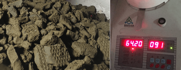 通過板框壓濾機脫水后,含水率 65%濕泥